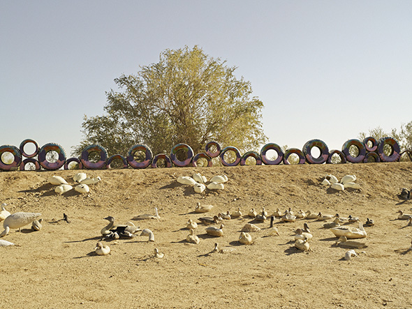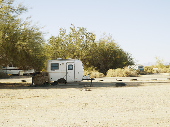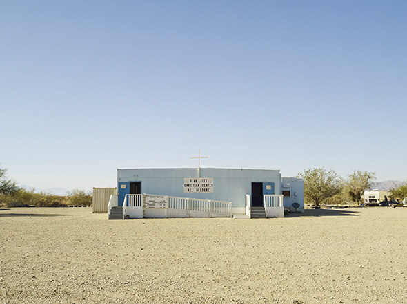Welcome to Slab City – the last free place in America (so some say). It’s a squatter’s camp of about 150 locals who reside off the grid in all kinds of makeshift houses, caravans, old buses and tents. It’s got no electricity, no running water, no sewers or toilets, no trash pickup service – but it’s got a church. Walking around reminded me of what the hangover party of Burning Man would be like, once the acid wears off, the fires burn down and the regular people go home to their regular lives.